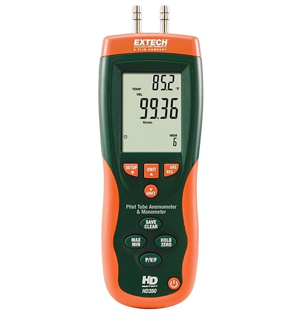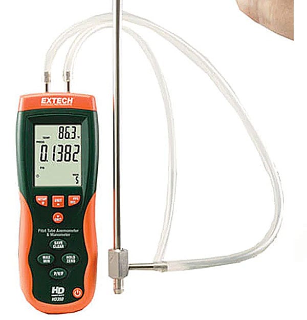 - Inklusiv Windows® kompatibel software og kabel, 9V batteri, pitotrør med 2 85cm måleslanger og kuffert